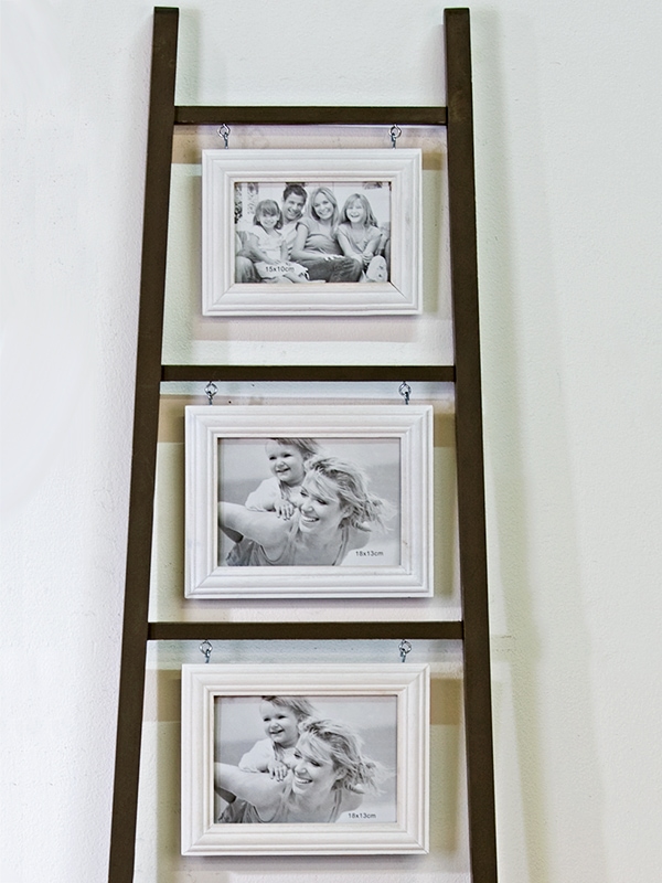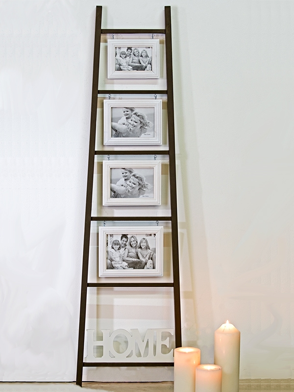 Nástěnný rámeček na fotky Home vlastně není rámečkem. Je to pořádně velký rám v podobě žebříku, mezi jehož jednotlivými stupněmi jsou zavěšené rámečky na fotografie v několika velikostech. Nápis HOME pod nejnižším stupněm nám připomíná, co je opravdu důležité - harmonický domov a rodina.